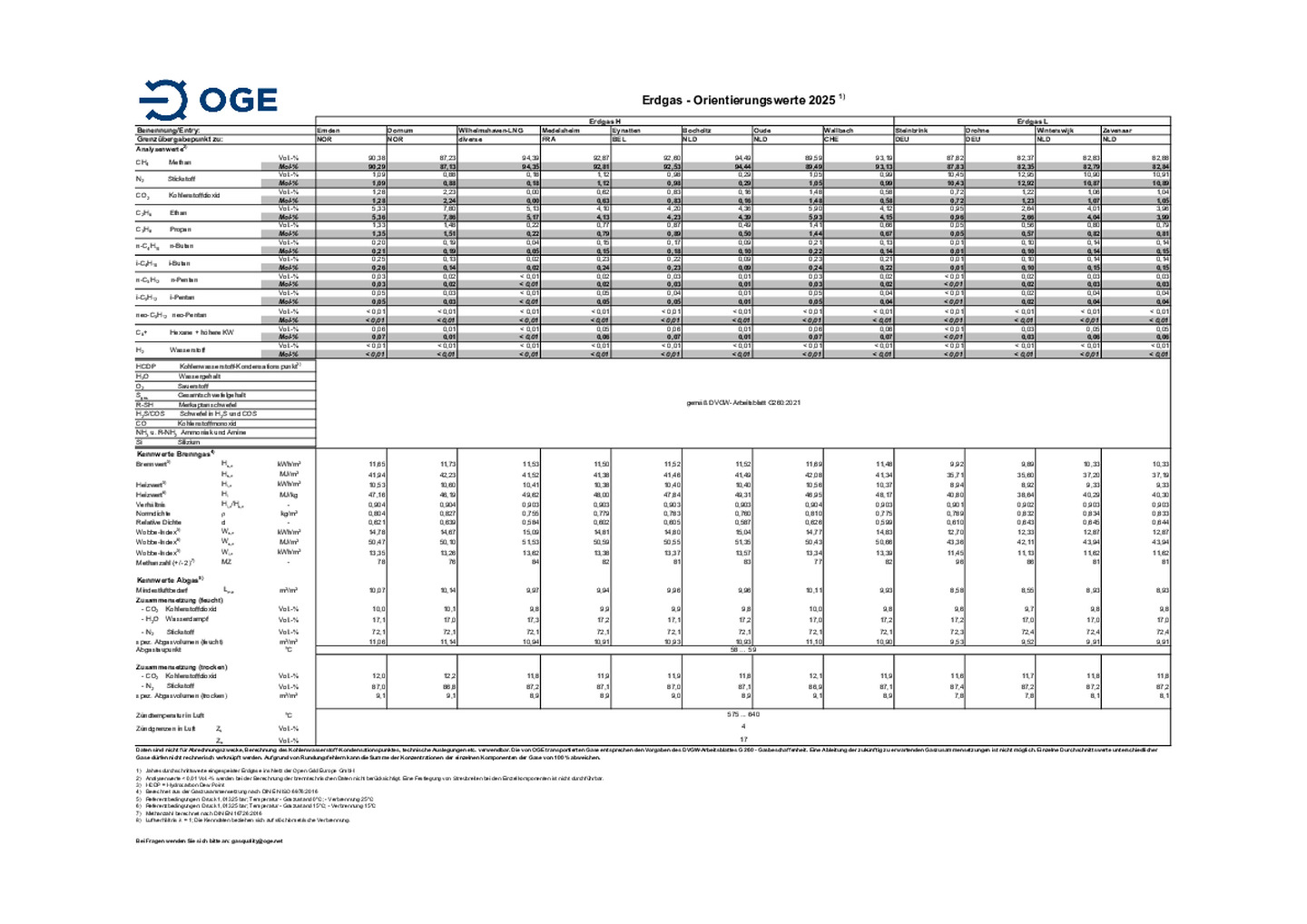 - Ermittlung der Erdgaszusammensetzung gemäß DVGW-Arbeitsblatt G 260