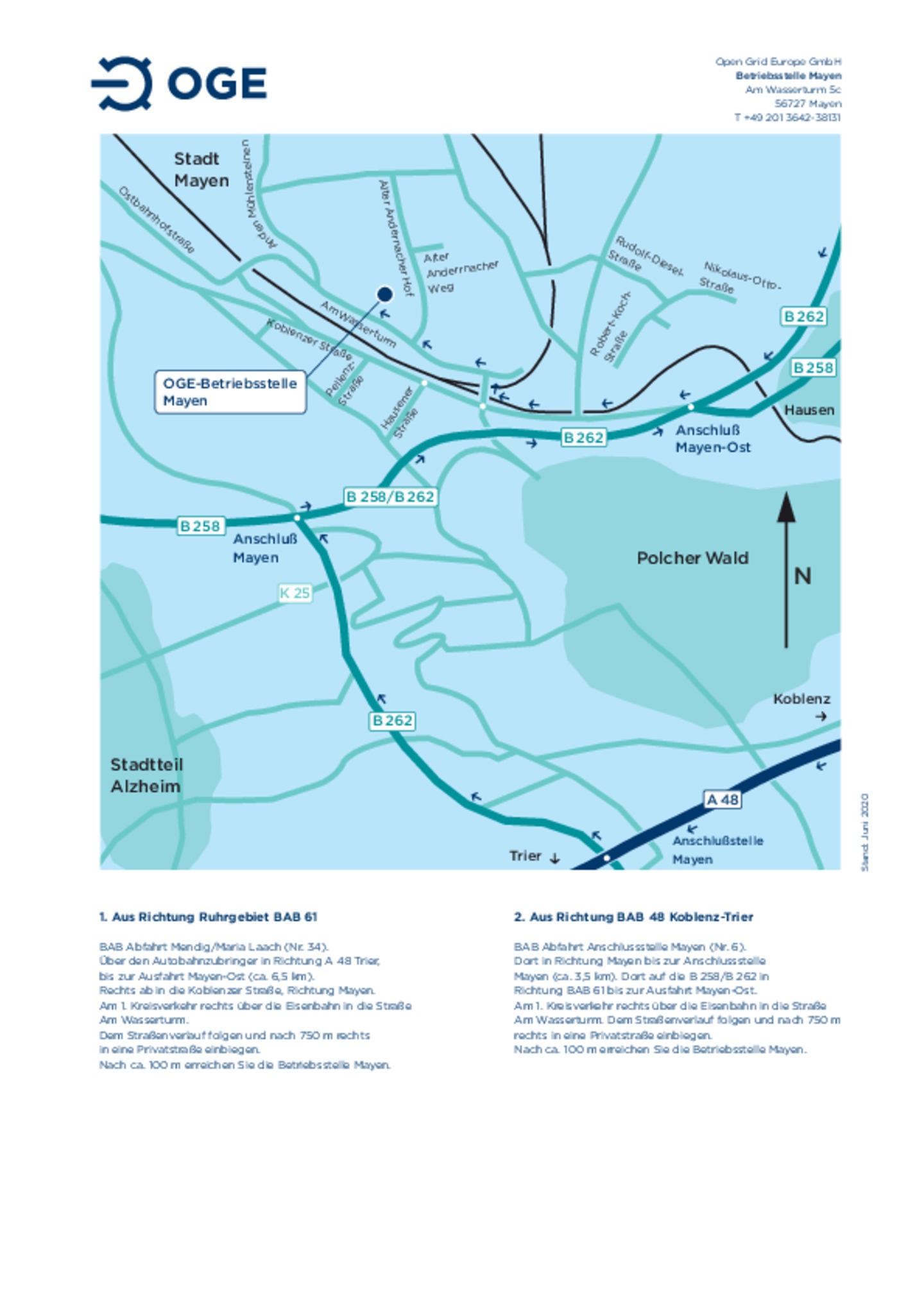 Anfahrtsskizze zur Betriebsstelle und Verdichterstation St. Hubert