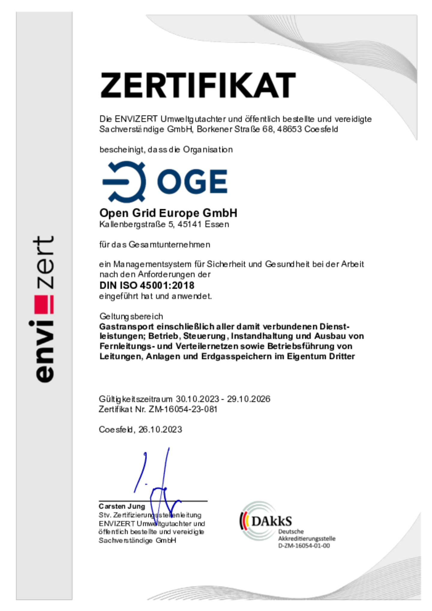 Zertifikat über ein Arbeitsschutzmanagementsystem nach DIN ISO 45001