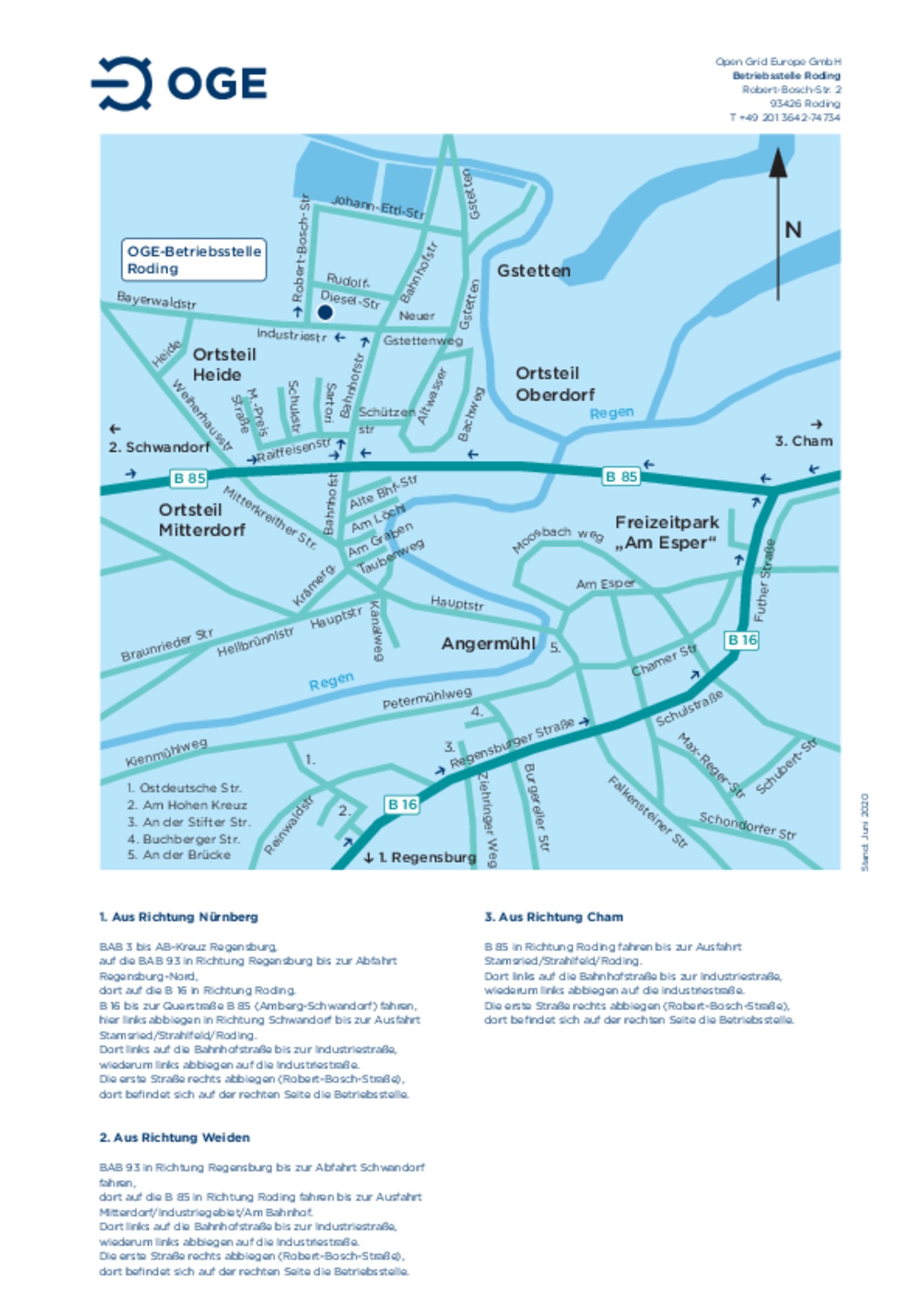 Anfahrtsskizze zur Betriebsstelle/Verdichterstation/Speicher Bierwang