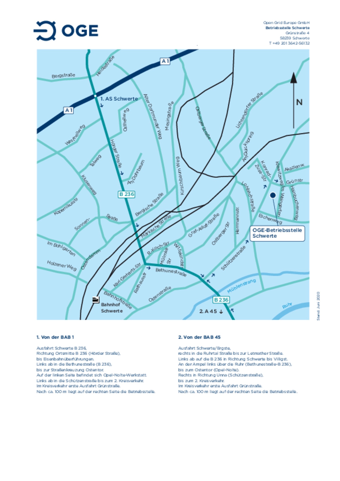 Anfahrtsskizze zur Betriebsstelle und Verdichterstation Werne