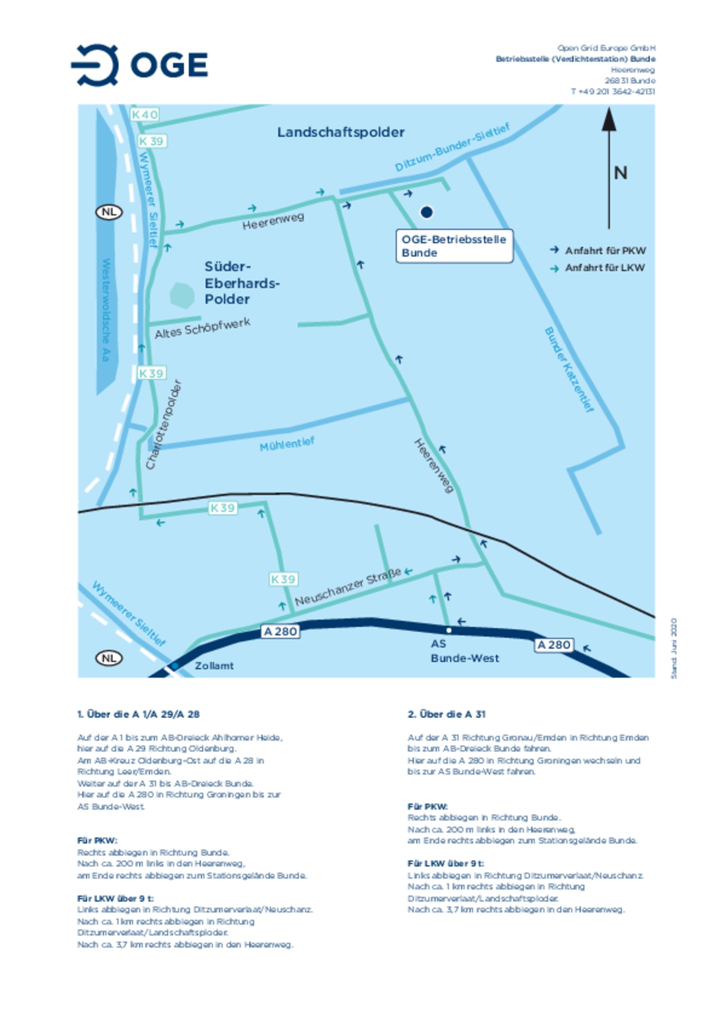 Anfahrtsskizze zur Betriebsstelle und Verdichterstation Bunde