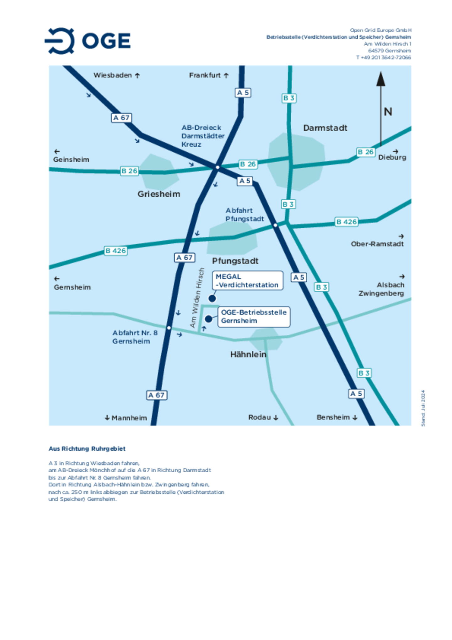 Anfahrtsskizze zur Betriebsstelle/Verdichterstation/Speicher Gernsheim