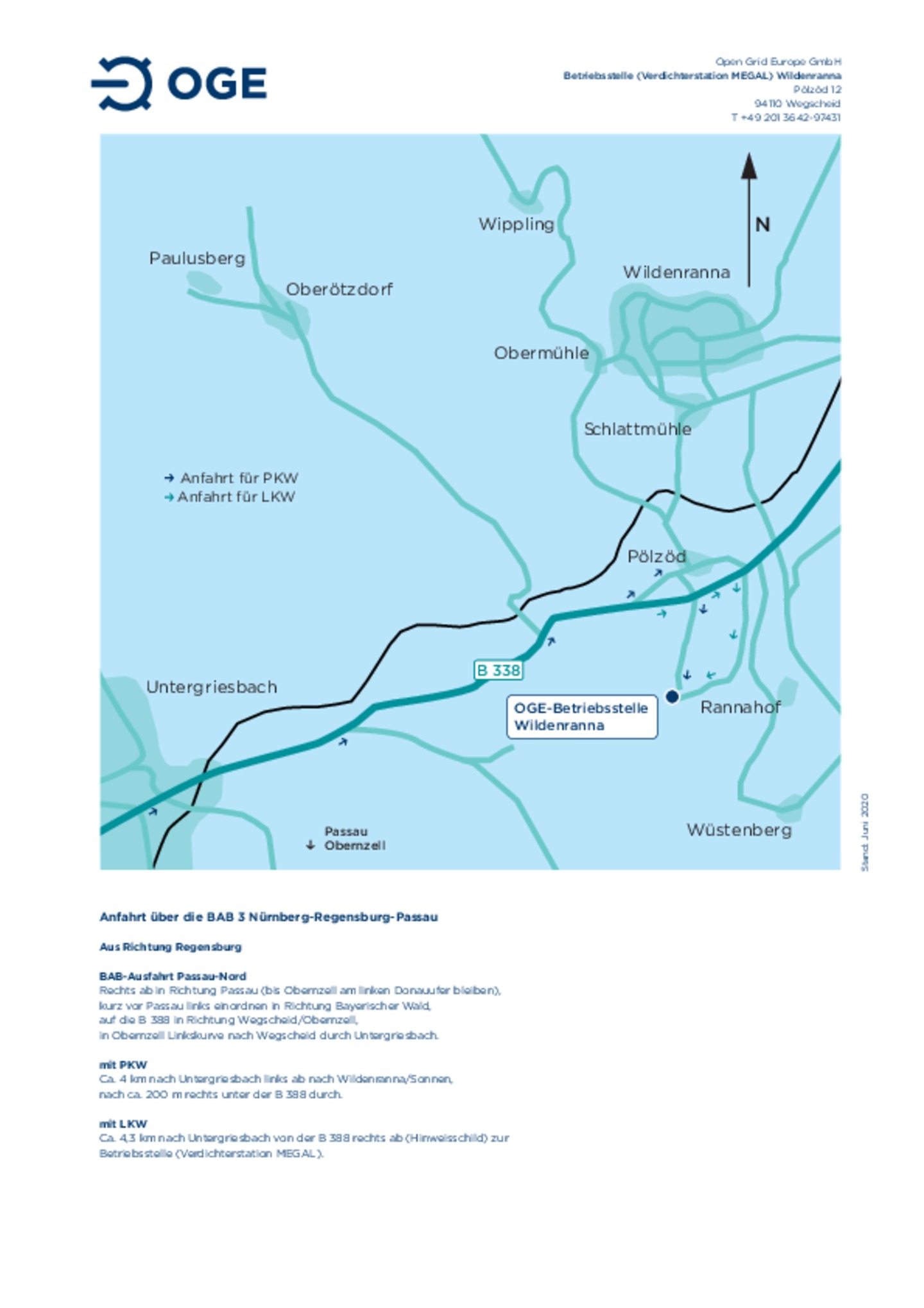 Anfahrtsskizze zur Betriebsstelle und Verdichterstation Wildenranna