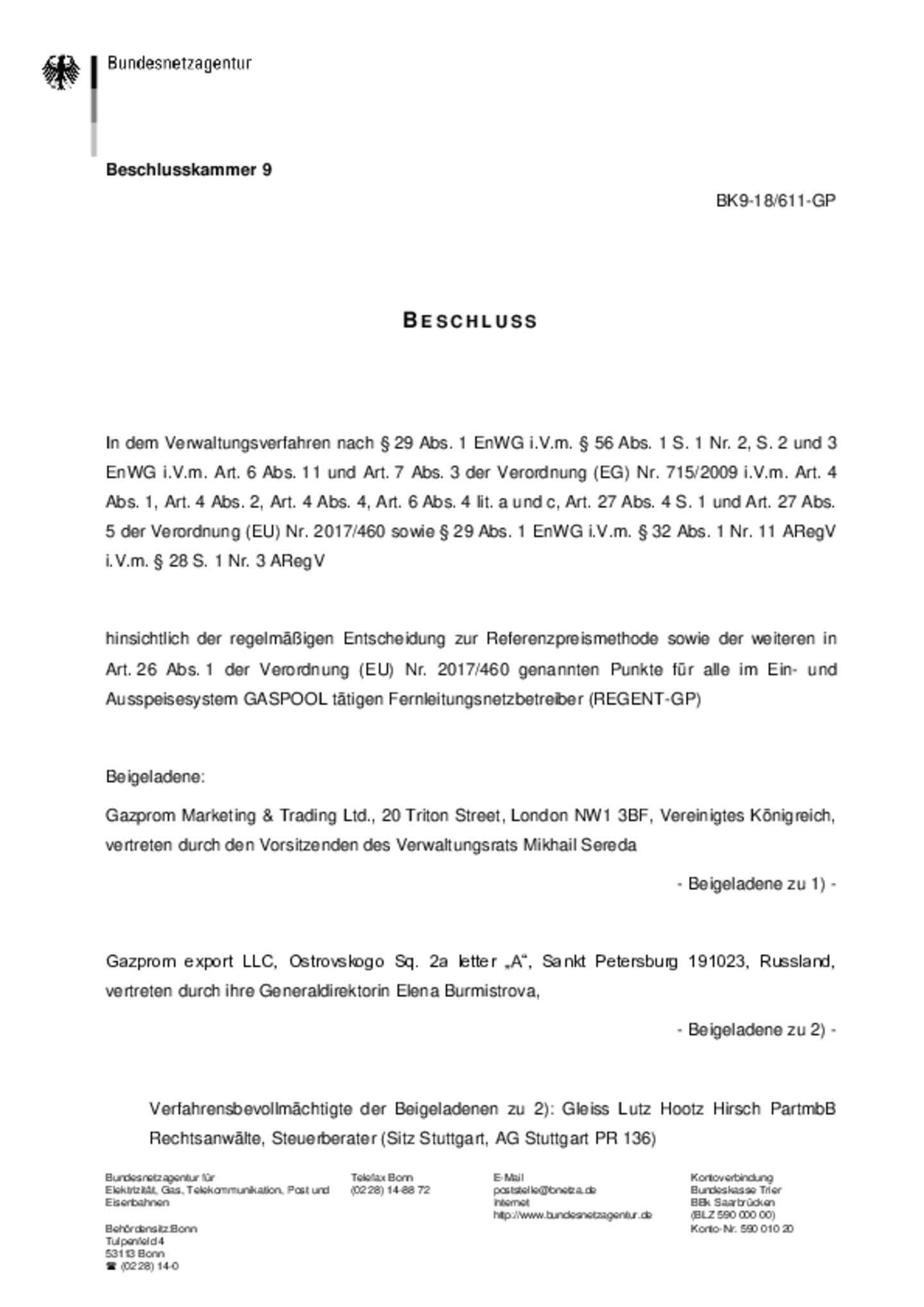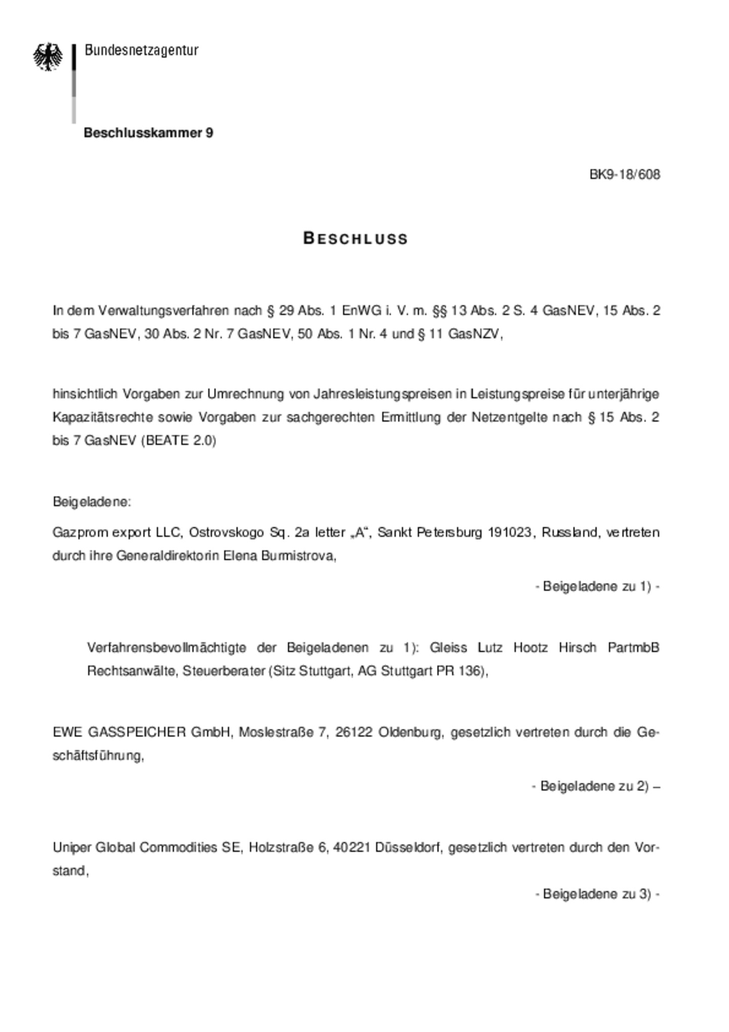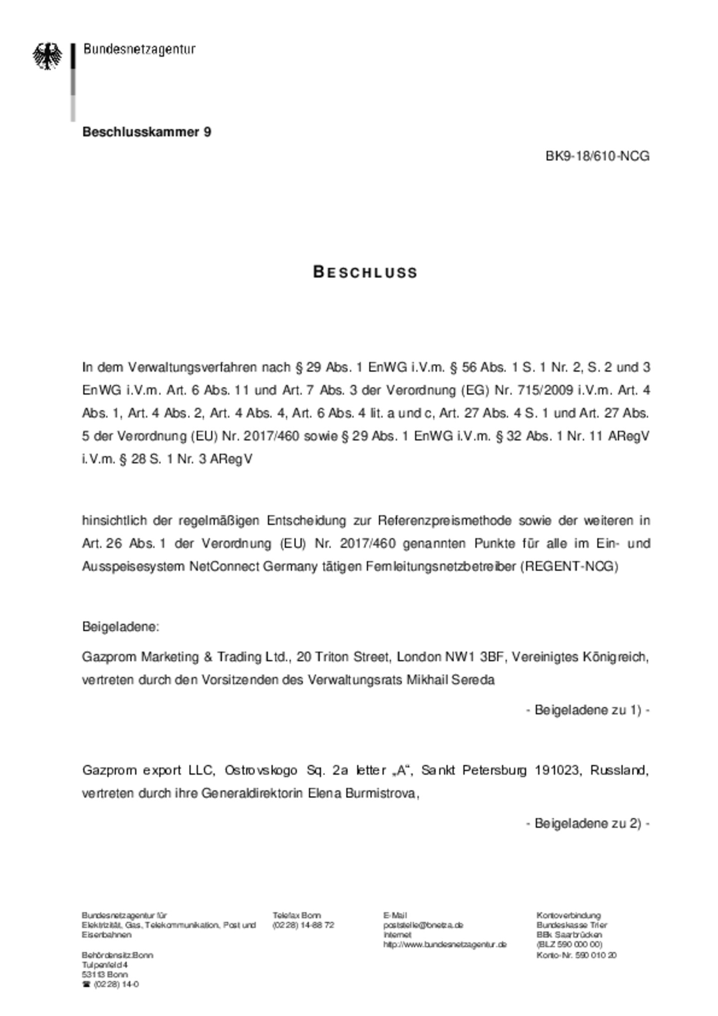 Ergänzung zum am 28.09.2018 veröffentlichten Preisblatt der Open Grid Europe GmbH für Ein- und Ausspeiseverträge sowie interne Bestellungen gem. Kooperationsvereinbarung X im Marktgebiet der NetConnect Germany GmbH & Co. KG (Preisblatt 2019)