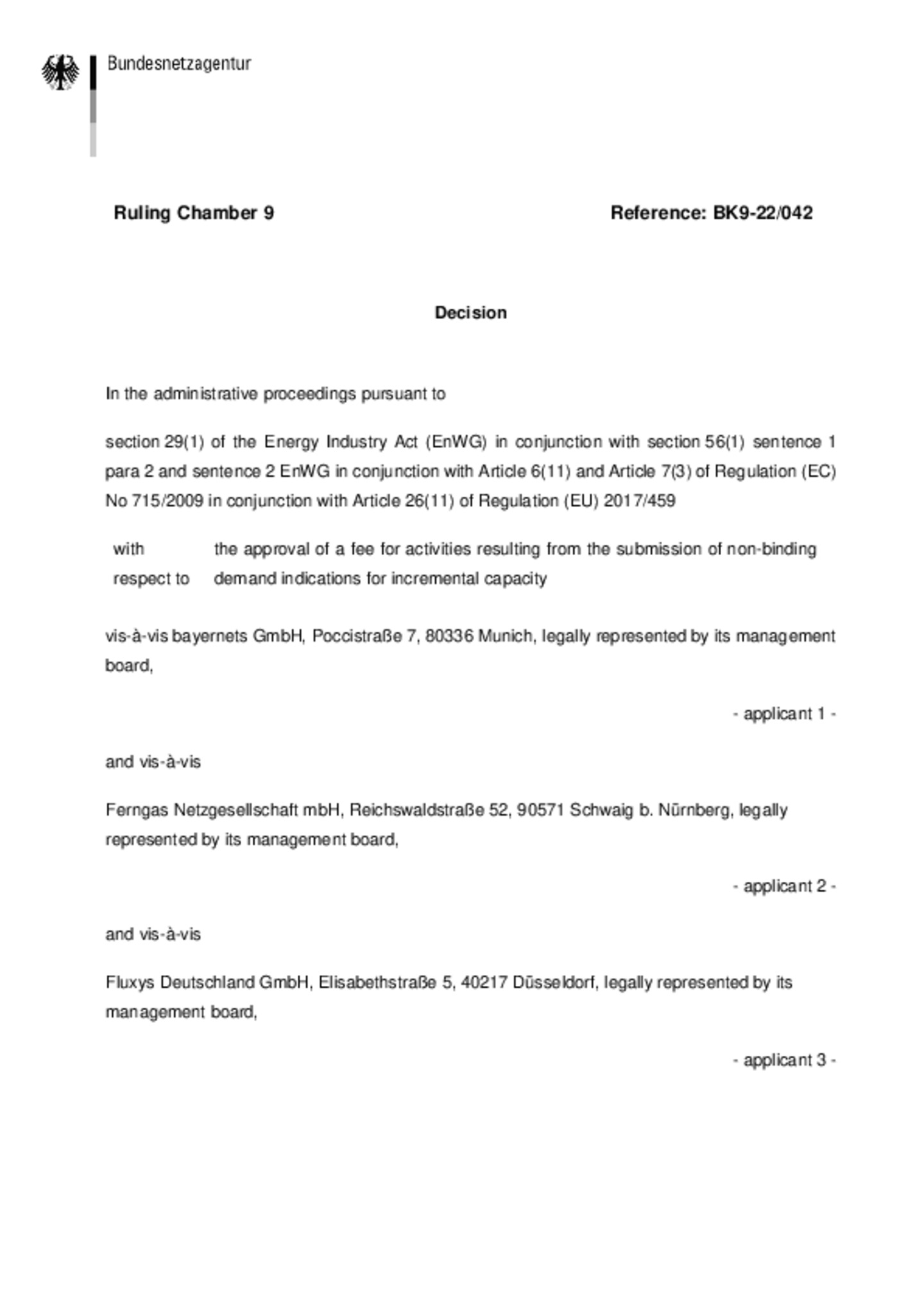 The approval by the Federal Network Agency and detailed information can be found in Decision BK9-22/042 or here.