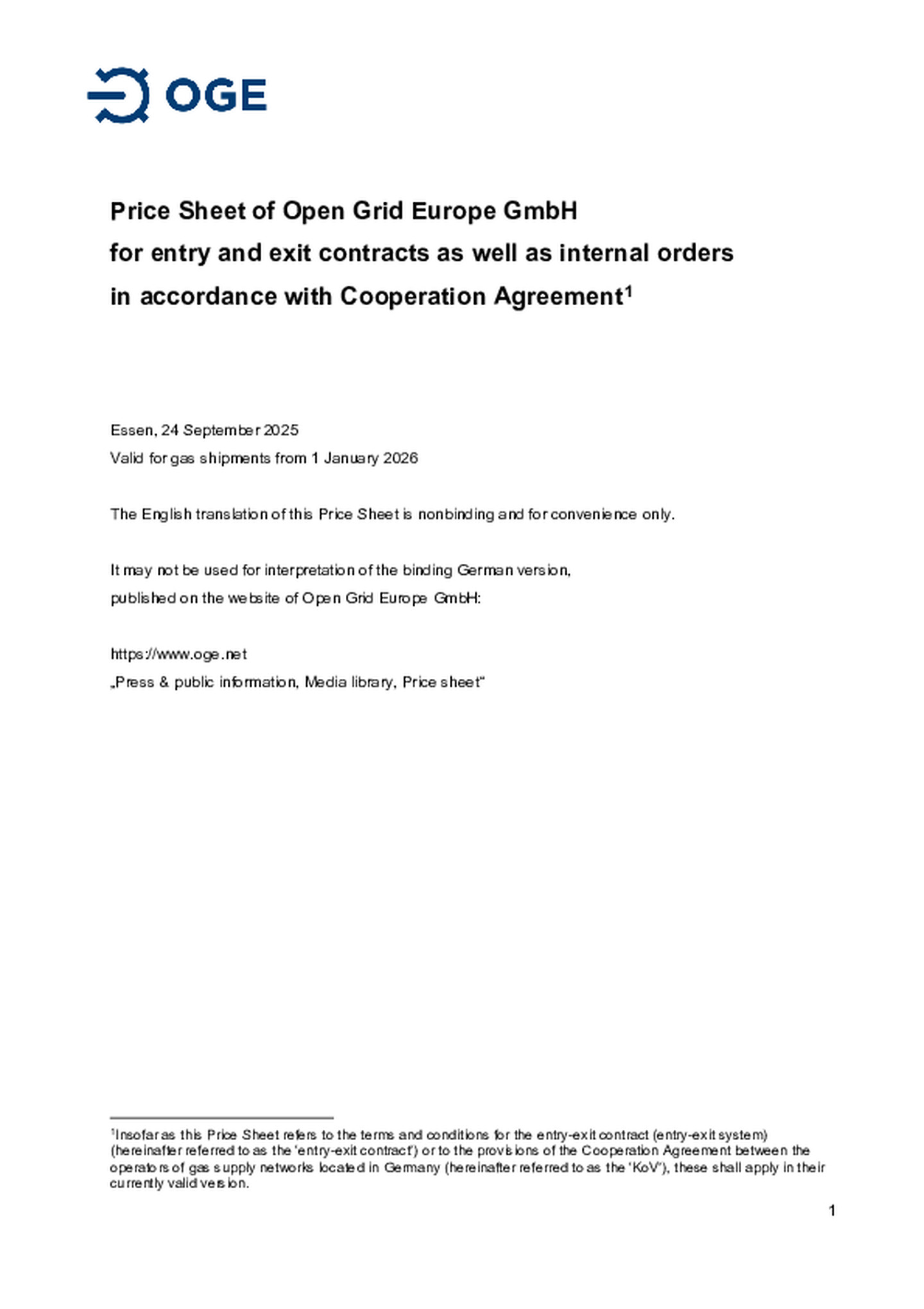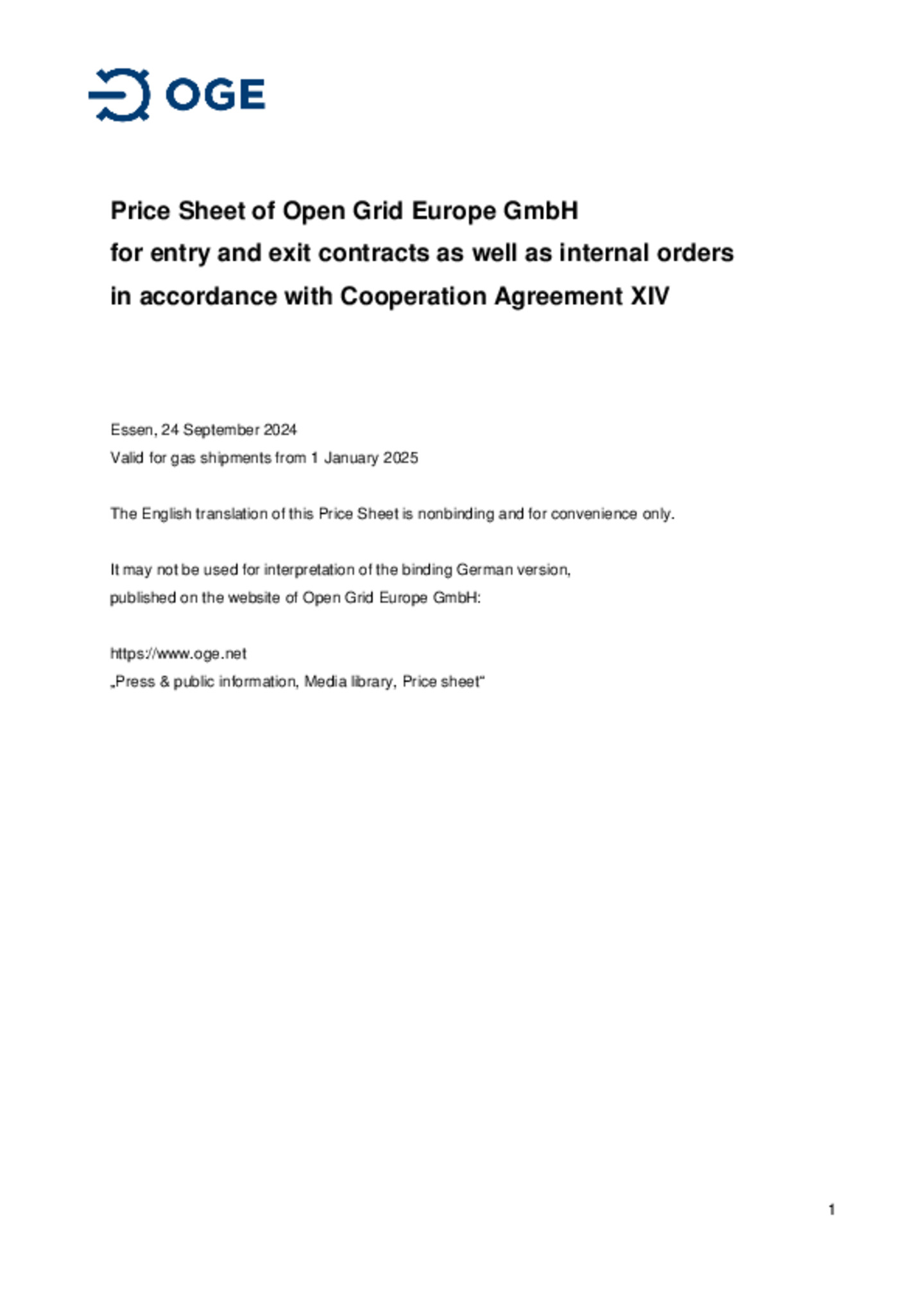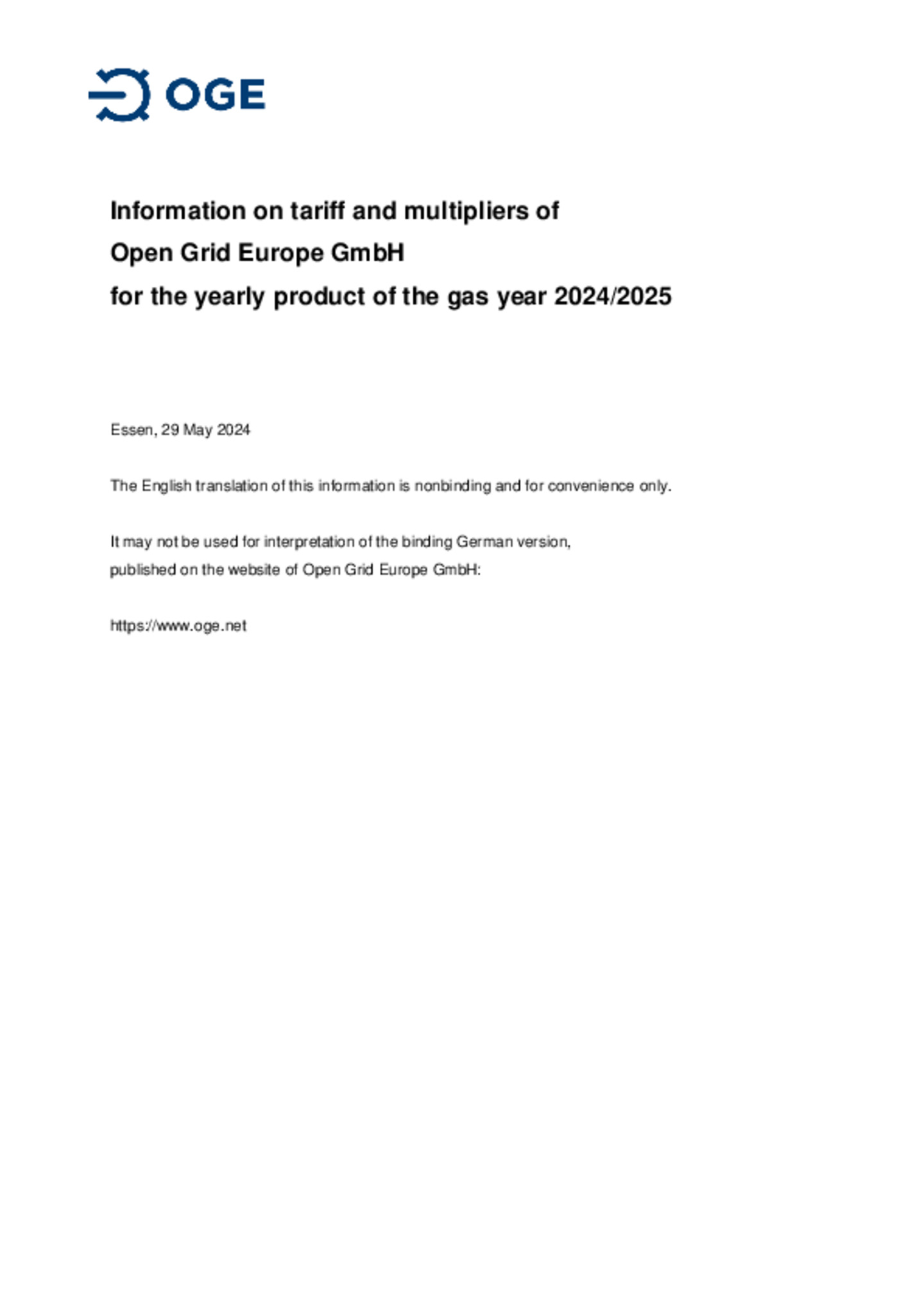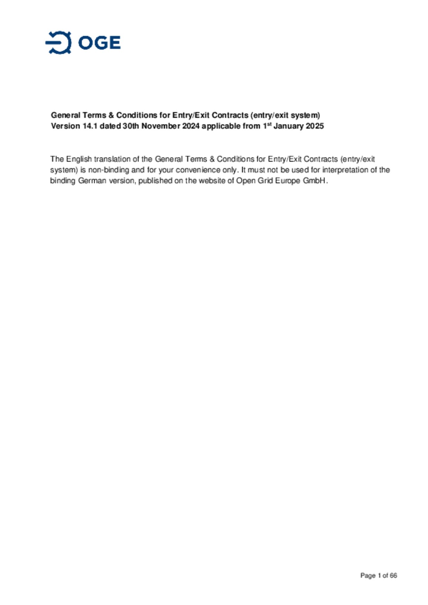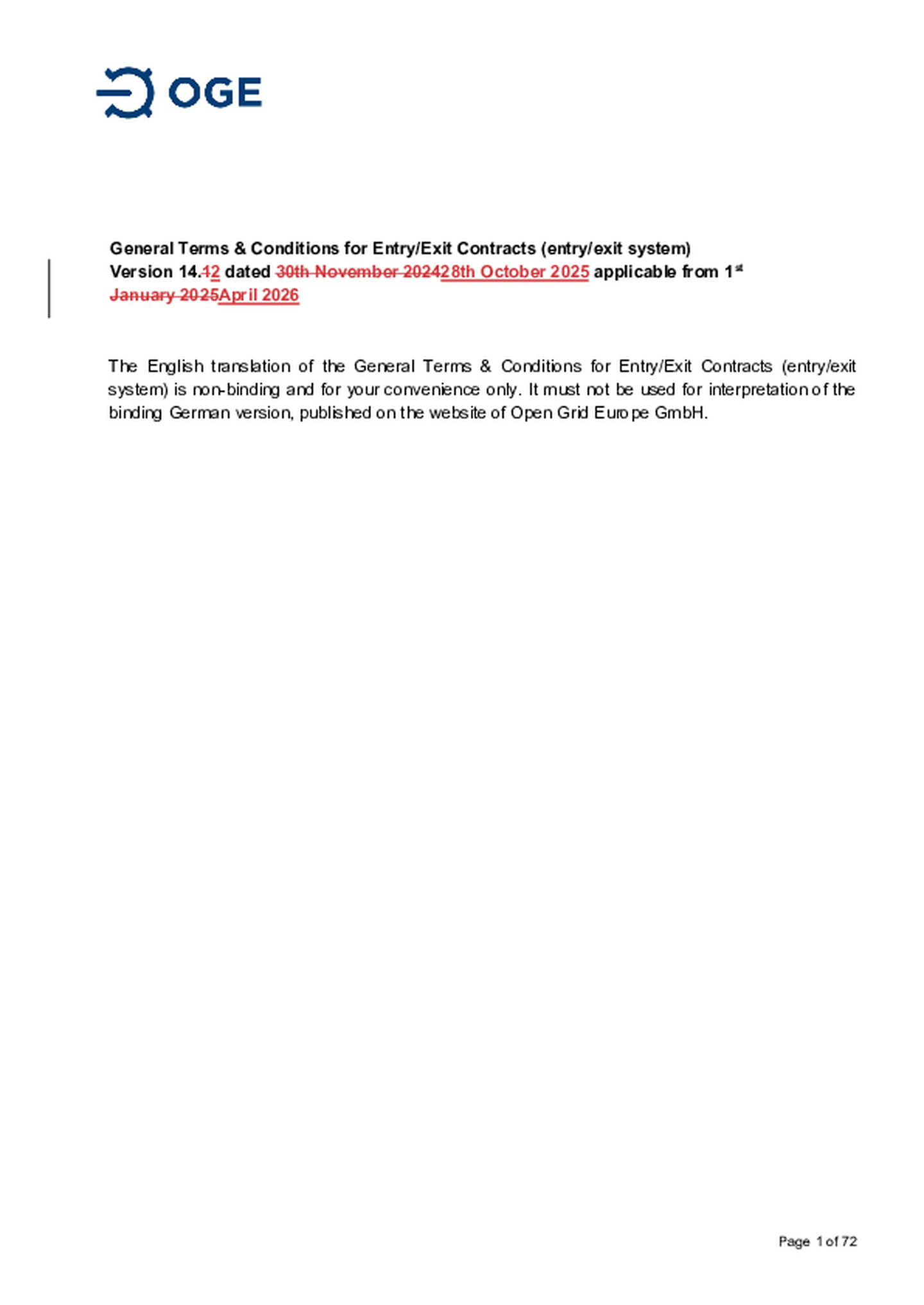 Supplementary Terms and Conditions of Open Grid Europe GmbH