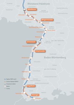 From 2023, existing sections of TENP I had to be replaced. This includes a 28.7 km section between Schwarzach and Eckartsweier, a 30.5 km section between Hügelheim and Hüsingen, both in Baden-Württemberg, and a 51 km section between Mittelbrunn and Klingenmünster in Rhineland-Palatinate.