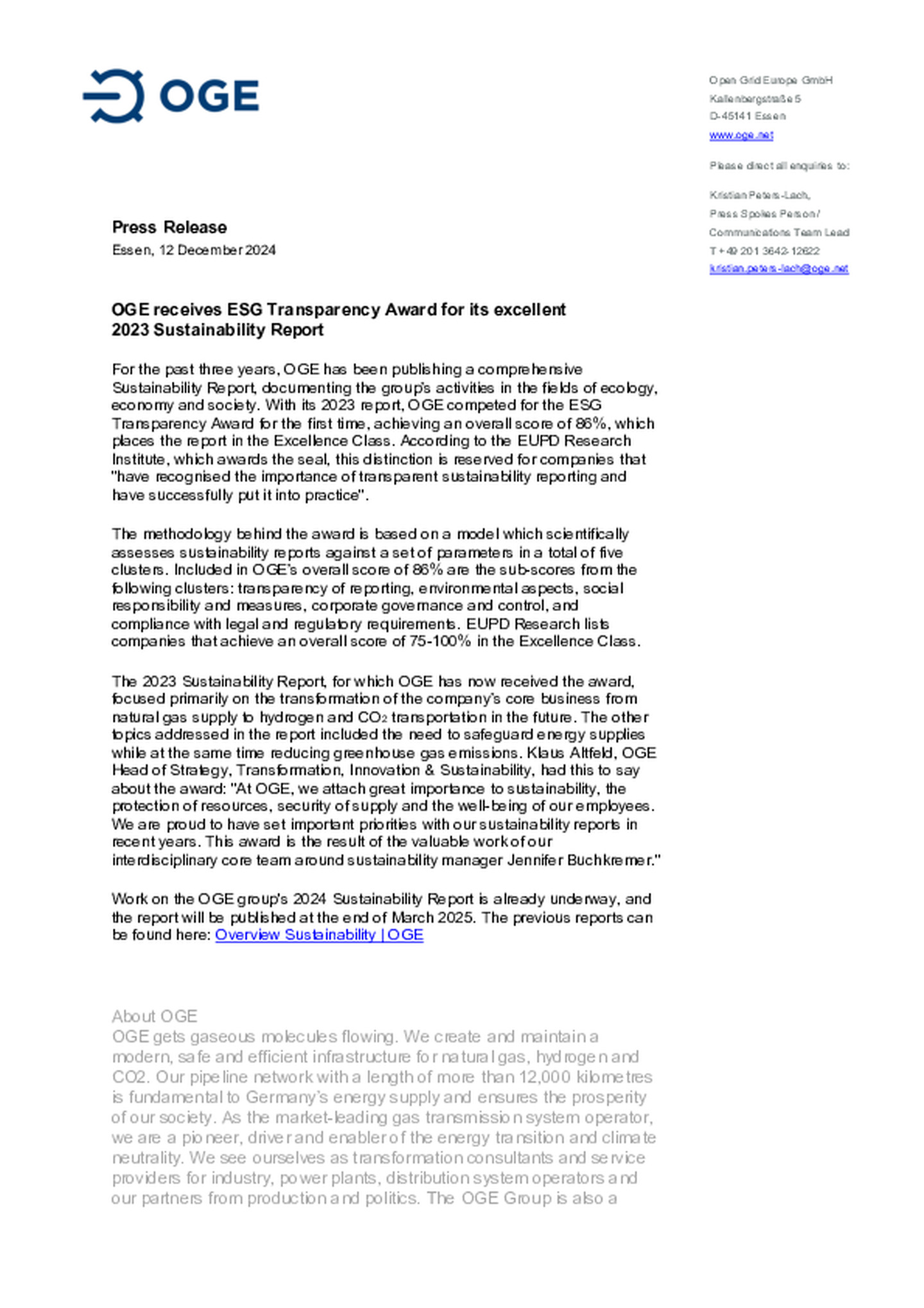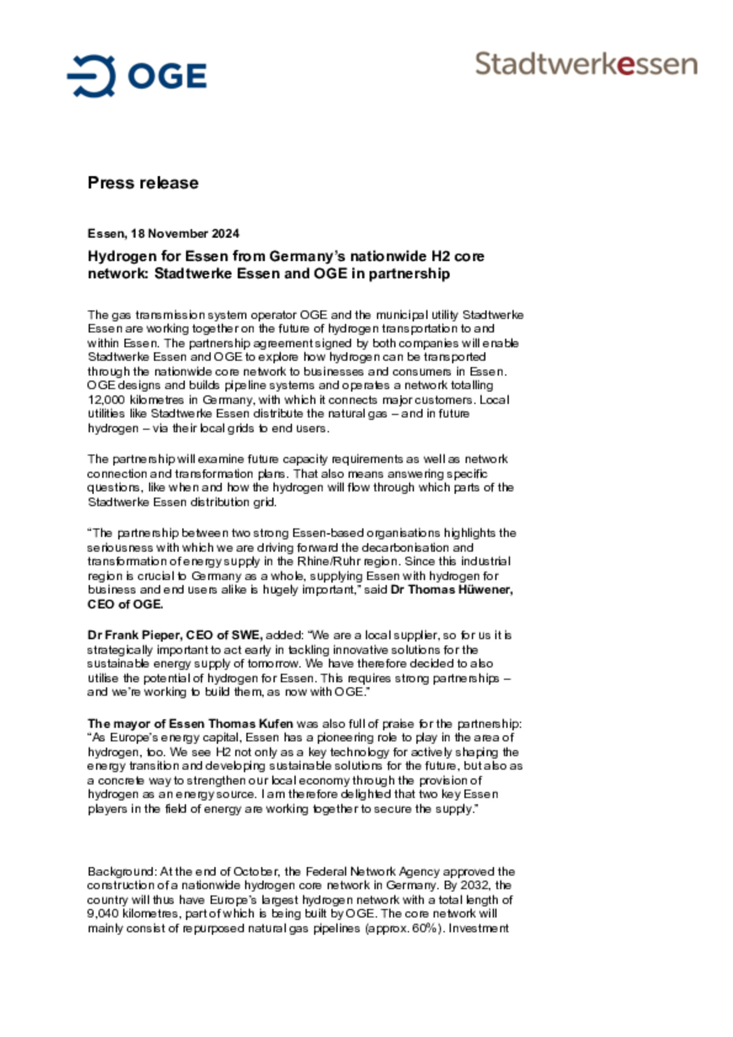 The specimen network interconnection contract published by Open Grid Europe is based on the provisions of Section 2 of Part 3 (Articles 26-31) and of Part 5 (Articles 52-62) of the Agreement on Cooperation between Operators of Gas Supply Networks Located in Germany as Amendement from 22nd March 2024 (KoV XIV), which is attached to the contract as Annex 5 for information.