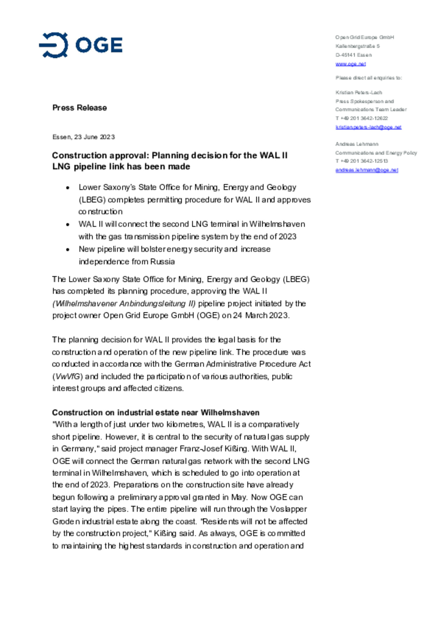 Ground-breaking ceremony for OGE's H2 training centre in Werne on 7 August 2023